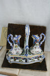 Antique french faience oil & vinegar setin its standmarked 1920 Gorgeous nostalgic piecehard to find 26cm wide and...