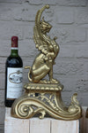 Gorgeous Antique French brass andironsform of Griffin gothic winged dragons very gorgeous pieces43 cm height and 27 cm...