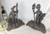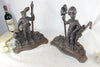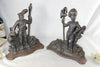 A gorgeous french pair of old fireplace andirons cast iron figural with soldiers very heavy pieces 36 cm...