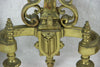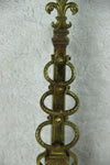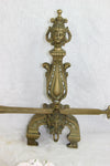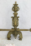 Antique PAIR French fireplace andirons bronze with armor / shield and fleur de lys / symbol of france...