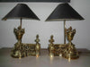 Antique PAIR fireplace andirons mounted as lamps very special exclusive antique french pieces bronze with lions heads 1930sboth...