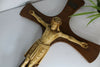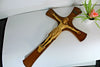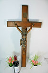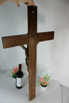 Antique French XL wood carved crucifix crossmetal copper christ80 x 40 cm1950s