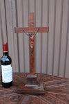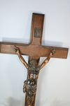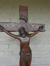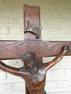 Antique French XL wood carved crucifix crosschalkware christ , signed by maker