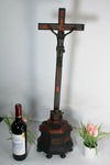 antique late 1800s Rare to find large wood carved crucifixvery beautiful with a sacred heart in the base75...