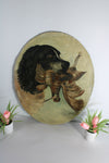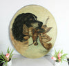 antique french oil canvas put on cardboard oval paintinghunting dog with a bird in his mounthsigned by artist...