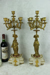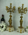 Rare French antique set of 2 candelabrasSpelter gold gilt with joseph and madonna figurines onyx marble base 54...
