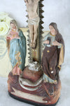 antique french chalk pieta with crucifix statuewith angels on topvery rare piece , never saw it before 30,5...