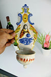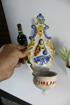 Antique 19thc french ceramic holy water font quimper 26 x 10.5 cm rare to find very old piece...