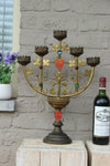 Antique French copper altar candelabra5 arms decorated with coloured stones cabuchons very decorative piece 50 cm height and...