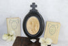 Antique really rare to find Barber mirror triptych can be opened and closeddated 1876with beautiful mother child decorsSome...