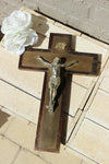 Antique french crucifixwood with metal christ 29.5 x 16 cm 1900s