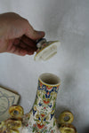 PAIR antique rouen ceramic candle holders 1930 -1950 periodsome chips at base but you can place them so...