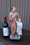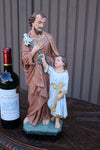 antique ceramic chalk statue saint joseph with young jesus42 cm heightbegin XXth centuryvery beautiful colours