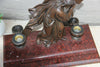 Gorgeous Antique French religious statue of Crhist carrying a cross inkwell spelter with bronze patina , on a...