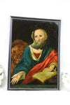 Religious antique eglomisereversed glass paintingSaint Luke , the evangelist37x47 cm with frame is from late 19th century ...
