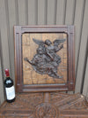 Very old French Wood carved religious plaquewas hanging in a monastery before 18thc, frame around it is more...