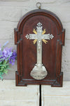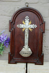 Gorgeous antique french crucifix holy water fonton a wood carved plaque1930/1950 periodmetal crucifix 34 cm height and 21.5...
