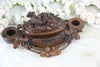 Antique rare to find black forest woo dcarved holy water fontcrucifix on top porcelain medaillon in middle with...