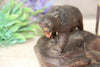 Antique German black forest ashtray with matches holderwith a bear figurinewood carved15 x 11 x 10 cm 1920-1930...