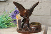 Antique German black forest ashtray with matches holderwith a eagle bird figurinewood carved15 x 14 cm marked underside...