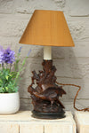 Antique German Black forest wood carved table lampwith a bird very detailed carving from begin 1900s with shade...