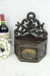 Gorgeous antique black forest wood carved frame plaque with an oil portrait painting in the middleis for wall...