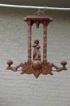 a very nice hunting theme chandelier from GErmany1950'sWood carved black forest designwith a hunter figurine with rifle in...