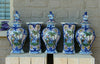 Gorgeous antique set of 5 pottery delft vasespolychrome paint all marked with Adriaen kocks mark 19thcenturystill in good...