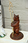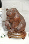 Rare black forest wood carved statue of bear 13.5 cm height ,diameter base is 8 cm switzerland 1920scame...