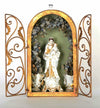 Antique old paris porcelain madonna with matching vasessilk floral decorin a shrine / chapel doors can be opened...