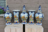 Gorgeous antique set of 5 pottery delft vasespolychrome paint with farming sceneall marked with i think is a...