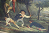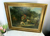 Antique 1900s French oil canvas paintingnaughty boys stealing apples owner with his dog coming after them very nice...