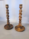 Antique Rustic English Oak Wooden Candlesticks, Barley twist candle holderss matching pair 30 cm height each 1930/1940good condition...