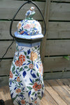 A DELFT POTTERY VASE polychrome marked with 3 leafs circa1880 foo dog on lid Floral and bird decor...