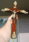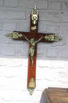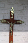 antique french crucifixbrass corpus and end points velvet 61,5 cm x 40 cm 19thc very beautiful cross for...