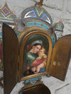 Rare antique french holy water font plaqueWith cloisonne enamel decordoors can be closed medaillon on porcelain with hand...