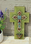 Antique Religious wall plaque relic holderinside a crucifix and coloured stones 5 relics begin XXth centuryvery beautiful piece28,5...