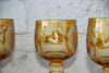 Gorgeous antique Bohemia yellow crystal glass glasses All decorated with deer hunting theme scenes small nicks base rim...