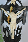 antique wood carved crucifixwood corpus also84 x 44 cmsmall nick bone skeleton and top sunburst part gone but...