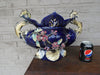 antique large barbotine majolica planter vase with dragons and dolphins very beautiful piece old repair made top see...