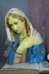 French antique chalkware busteMadonna Mary nice colours 33x27cmgood condition with a few places where finish is gone see...