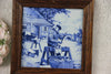 Vintage Dutch delft mosa marked tile in wood frame lump maker19x19 cm with frame marked at back1960s