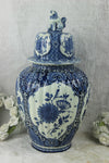 Vintage dutch Delft blue white pottery vase in typical blue white floral decors lidded with foo dog on...