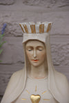 gorgeous religious antique bust of virgin Mary Signed by maker at back chalkware polychrome painted 21.5 x 13...