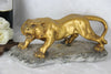 Chalkware art deco sculpurepanther / tiger gold gilted30x10x13 cm 1930's