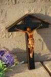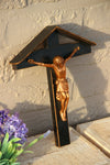 Gorgeous vintage french crucifix from 1950s wood cross / chapel form with metal christ 26 x 21 cm...
