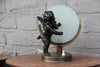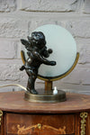 Gorgeous french table lamp metal putti angel glass disc is from 1960/1970 made in art deco design 23.5...
