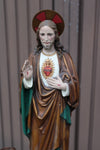 antique XL 67 cm height ceramic chalk statue of a sacred heart christvery beautifulslight wear see pics1900s