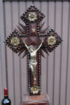 Antique tramp art wood carved crucifix81 x 41 cm height so really impressive piece1940s some imperfections wood see...