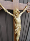 antique 19thc religious crucifixwood carved crossceramic chalk corpus christ ( nick feet and finger see pics but hardly...